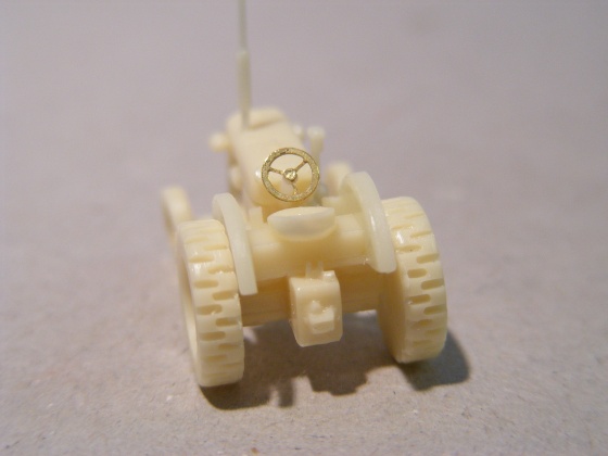 Sestavený model jsem natřel zelenou Revellkou č. 364 SM, spodní část a motor pak šedou Revellkou č. 69 Matt , kola, volant a sedačka černou č. 8, nakonec po zaschnutí barvy jsem osadil leptané disky kol, které jsem si již připravil a natřel je žlutou Revellkou čp. 12.