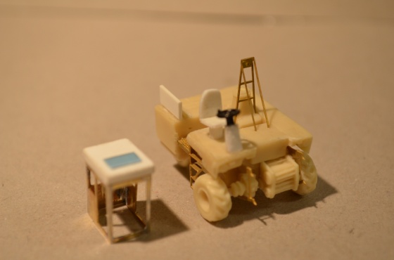 K tomu jsem použil kousek trubičku z „uchošťouchu“, destičku a výlisek kola ruční brzdy pro vagóny. Vše jsem poslepoval a vsadil do prostoru kabiny, tedy osadil jsem to na stroj a kabinou to přijde zavřít.