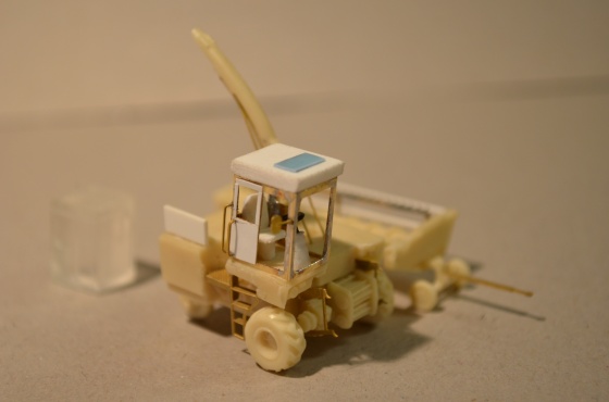 tak jsem sledoval stavbu kombajnu na kukuřici i tuhle stavbu kombajnu na píci, ikdyž se jedná v podstatě o stejný model, rozdíl je patrný, jedná se o provedení kabiny, dodávaný odlitek je neprůhledný, jaksi zrnitý a modelu na kráse moc nepřidá, kabina postavená z plechu je fakt „mazačinka“. Určitě to byla neskutečná piplačka, ale ten celkový dojem se rozhodně nedá srovnat, k tomuto fotoseriálu bych proto připojil ještě jednu fotku, která zde chybí a to fotku rukou autora :-)), které ostatním dokázaly, že to jde a o tom v podstatě modelařina je, zkoušet a dokazovat, že když se chce, že to opravdu jde, já razím heslo, že „v detailu je krása“, nedávno toto moje motto jedná má kamarádka ještě trochu doplnila “ v detailu a kvalitě je krása“ a mně nezbývá, než s ní souhlasit, všechno to svoje psaní shrnu do dvou slov, která vyjádří vše _ SKVĚLÁ PRÁCE !!!