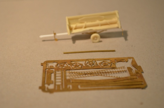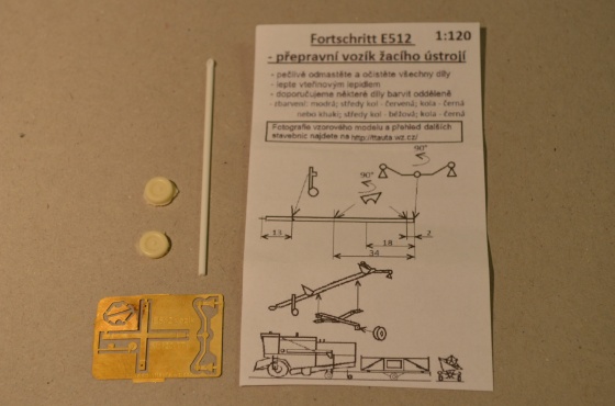 Stavebnice obsahuje planžetu leptu s drobnými dílky, odlitky kol, plastovou tyčku sloužící jako páteř vozíku i jako vlečná tyč a jednoduchý návod.