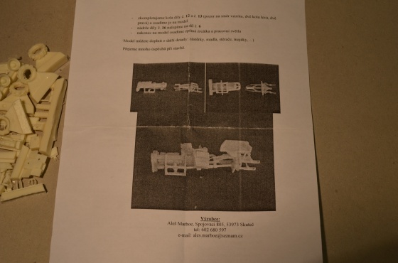 Tato resinová stavebnice pochází opět z dílny p. Aleše Marboe, který navštěvuje také pražské modelářské burzy v menze, nebo po vzájemné dohodě lze zakoupit i jiným způsobem. Stavebnice je uložena do plastového sáčku s klipem, součástí je i návod a kontakt na výrobce.