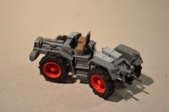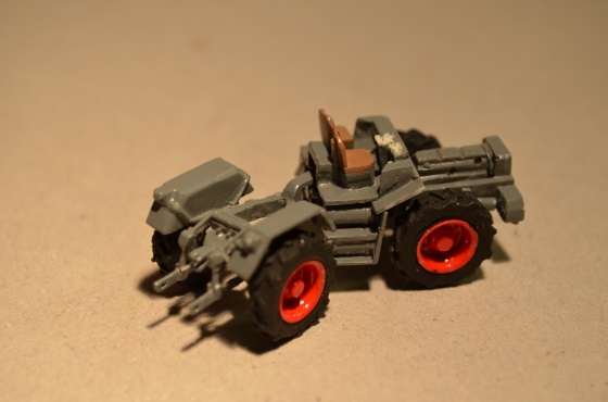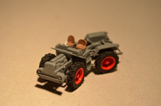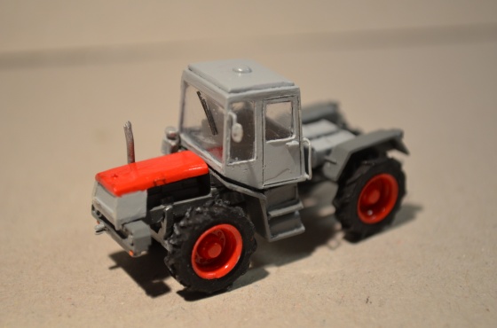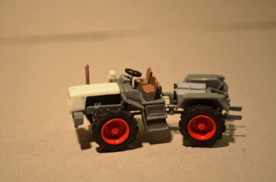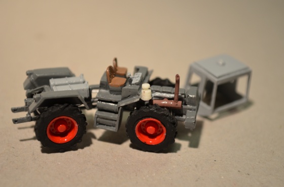 Po zaschnutí jsem zvýraznil ještě pístnice hydrauliky nátěrem stříbrnou, sedačky hnědou a volant černou.
