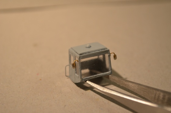 Na kabinu měly ještě být připevněny dvě zpětná zrcátka, která jsou ve stavebnici obsažena, prohlídkou fotografií se mi ale nezamlouvala, takže jsem přistoupil k vlastní výrobě ze zbytků leptů.