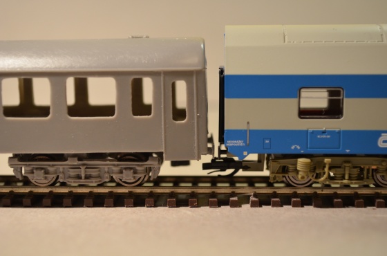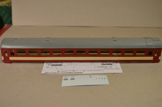 Při pravidelných návštěvách pražských modelářských burz v Menze v Opletalově ulici mi padla do oka polyuretanová stavebnice tohoto vozu, skládající se ze skříně, rámu podvozku, podvozků, drobných doplňkových dílů na podvozek, čelních měchů, sestavy kinematik a sedaček interiéru. Lze ji zakoupit u stolku p. Bártka.