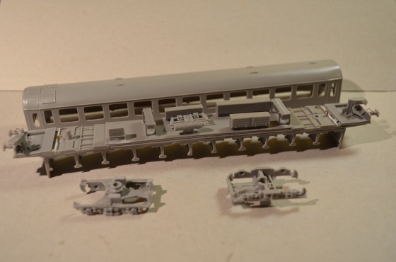 Stavebnice je včetně nálitků, které alespoň jednotlivé díly ochrání proti poškození při transportu. Skříň vozu je tenkostěnný odlitek, kromě nálitků a blanek v oknech není třeba dále opracovávat.