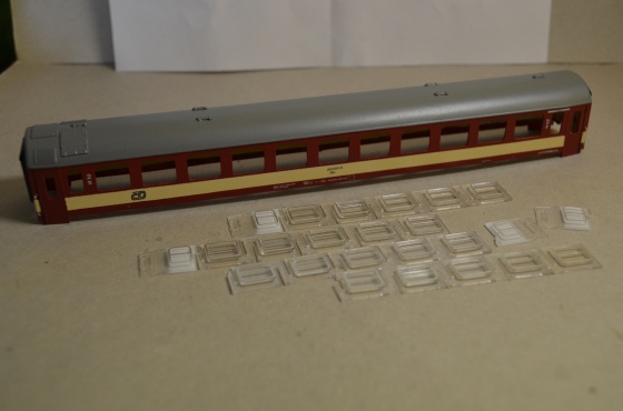Mým původním záměrem bylo osadit skříň rámy oken z leptu bočnic DK-model, ale nakonec „zvítězila“ okna vozu Y BTTB.