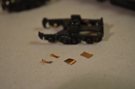 Co se týká sbírání proudu, tady je to opravdu bezproblémové, dříve jsem to dělal z okolků a osiček, ale vždy to bylo na úkor zvýšeného jízdního odporu vozu, samozřejmě jak píšeš přes ty šrouby to jde také, ale vzhledem k tomu, že jsem „vyrovnával“ podvozek plátem plechu, raději jsem volil toto řešení. A jistě, powerpack drží napětí na ledkách ještě tak cca 10 s po sejmutí vozu z kolejí.