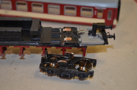 Takže nezbylo než tuto výšku upravit zbroušením styčných ploch obou podvozků.