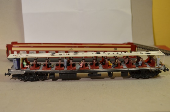 Nezbytným vnitřním doplňkem vozu jsou pak také figurky cestujících, ve služebním oddíle by i nějaké to jízdní kolo mohlo býti přepravováno.