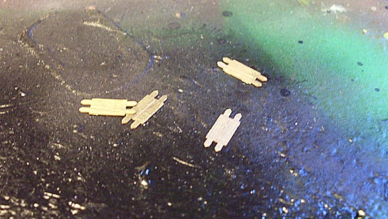 Teď už můžeme díly vyřezat z rámečku (nožem, nůžkami…). Já stavím podvalníky po dvojicích (k čemu taky jeden podvalník, že).