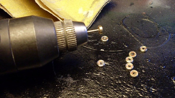 Je ale potřeba si vyhrát s kolečky. Ty nevlékám na drát upnutý do vrtačky (průměr 1 mm) a obrousím pojezdovou plochu do hladka. Zmizí tak nepravidelnosti v cínu a spojovací můstky vrstviček, takže získáme hladký povrch.