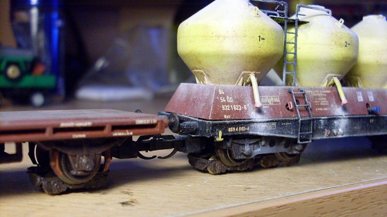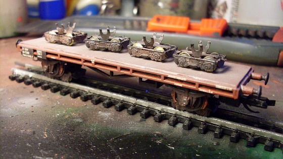 Takhle tedy vypadají dokončené vozíčky. Zatím nemám kde jezdit, takže funkčnost ověřenou nemám. Myslím ale že i jako dekorace na odstavnou kolej nebo náklad na nějaký normální vagon svůj účel splní.