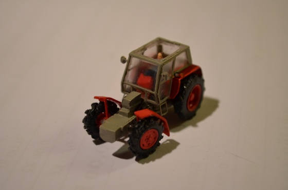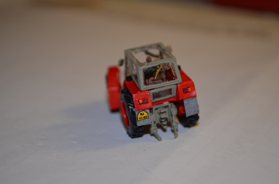 Dále konečně připevnil i kabinu a připraveným otvorem pod střechou jsem vsadil i traktoristu ze sedících figurek fy. Preiser.