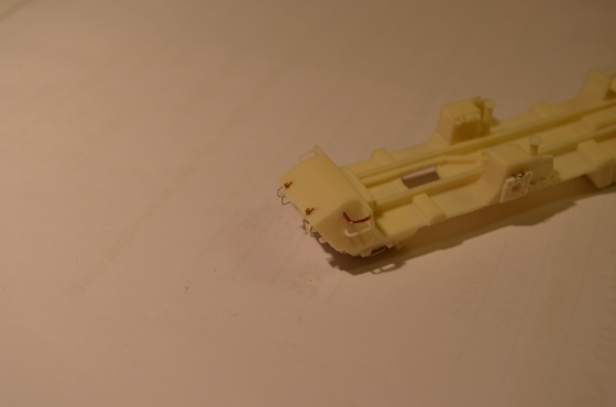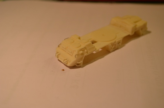 Podobně jsem upravil i vozidlo, zde jsem ještě do přední části přilepil dva střešní háčky z leptu znázorňující tažné háky.