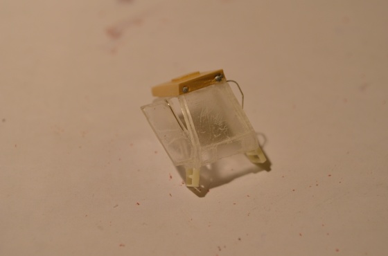 Vypadá to epesně. Sice by (ryze teoreticky) asi byla zajímavější kabina z plechu a acetátu, ale v týhle velikosti by to byla zbytečná práce navíc, pokud by model nebyl čistě „výstavní“. V terénu kolejiště se „průhledně neprůhledná“ skla ztratí a pro manipulaci při lepení je to takhle o mnoho lepší.