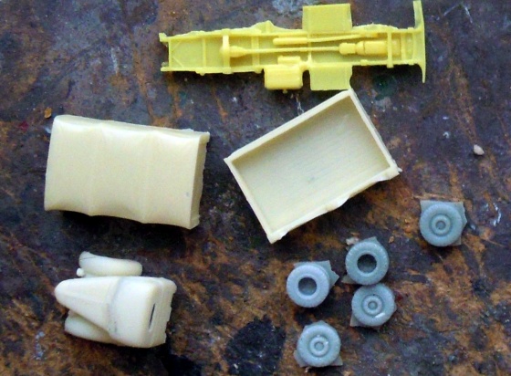 Po vybalení dílů z pytlíku jsem provedl kontrolu dílů – celkem to šlo, ale interiér žádný, drobné detaily taky žádné a kola příliš objemná.