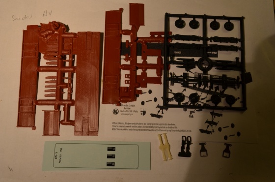 Co se týká obsahu, je součástí stavebnice kromě dílů vlastního vozu ještě výlisek podvozků z produkce bývalé LPH Jičín, resinový odlitek nárazníků, očková spřáhla, aršík obtisků a poněkud strohý stavební návod.