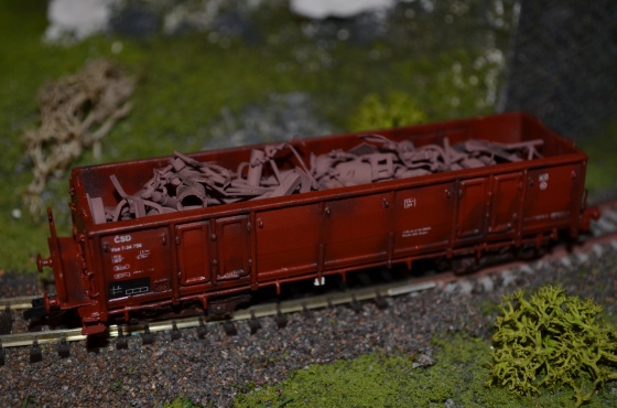 Ten šrot je super, kolikrát jsem s touto samou myšlenkou koketoval ale nikdy se mi do toho nechtělo z důvodu pracnosti. Každopádně ještě bych ten náklad trochu barevně „rozbil“ aby to vypadalo o něco věrohodněji 🙂