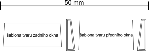 Vytiskněte a dle šablony vystříhejte okno z plastové tabulky. U čelních oken je zvýrazněna pouze viditelná část, je možno přidat ve spodní části cca 0,5 – 1 mm k přilepení k leptaným čelům. U bočních oken kabiny tvoří vnější rámeček rám okna, vnější pak samotnou viditelnou plochu okna.