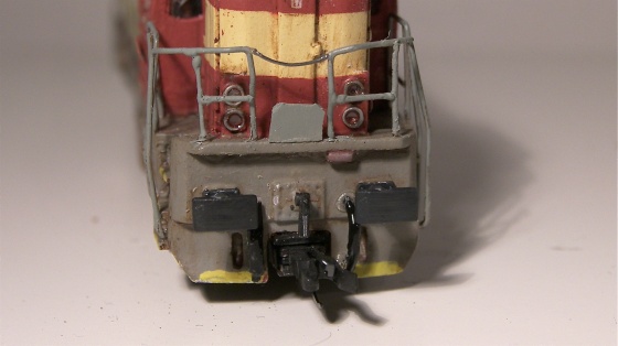Když už byla lokomotiva venku z vitríny, osadil jsem i nárazníky SDV.