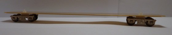 Následují podvozky. Po odřezání a začištění jednotlivých dílů nejprve na hlavním nosném dílu ohneme boky podvozku a až teprve poté očka pro vedení dvojkolí. K přilepení samotných bočnic a krytů ložisek byl opět použit vteřiňák. Dle návodu je u dvojkolí vhodné drobně zbrousit hroty, ale jedná se o řád desetin milimetru.
