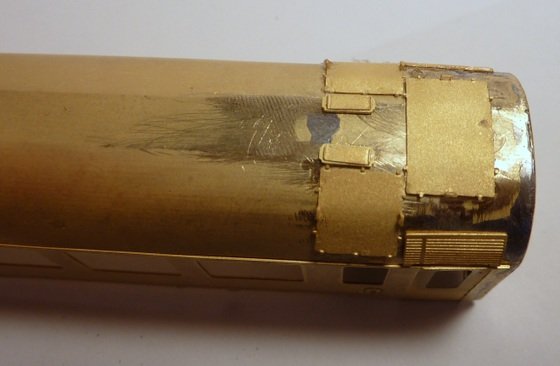 Připájení na čela je hračka, stačí aby zapadly všechny zámky a trochu přihnout střechu do tvaru na konci (vůz se zužuje). Vše pěkně zevnitř i trochu zvenčí zapájejte a zabruste. Tím docílíte i docela pěkně kulatého rohu.