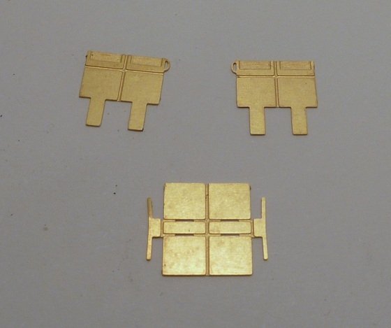 Dále jsem na podložku přichytil „vnějškem dolu“ čelo a připájel boky zapuštěné stěny, pak vrchní díl a pak spodní. Na to pak přechodové dveře. Přechodový můstek nechte zatím na leptu.