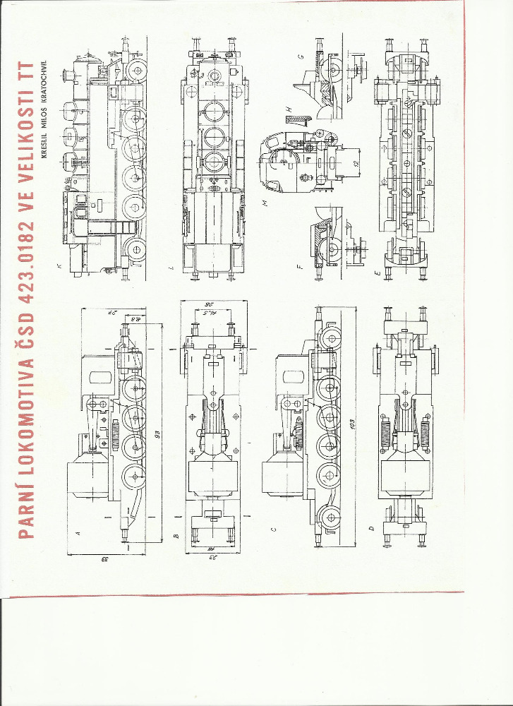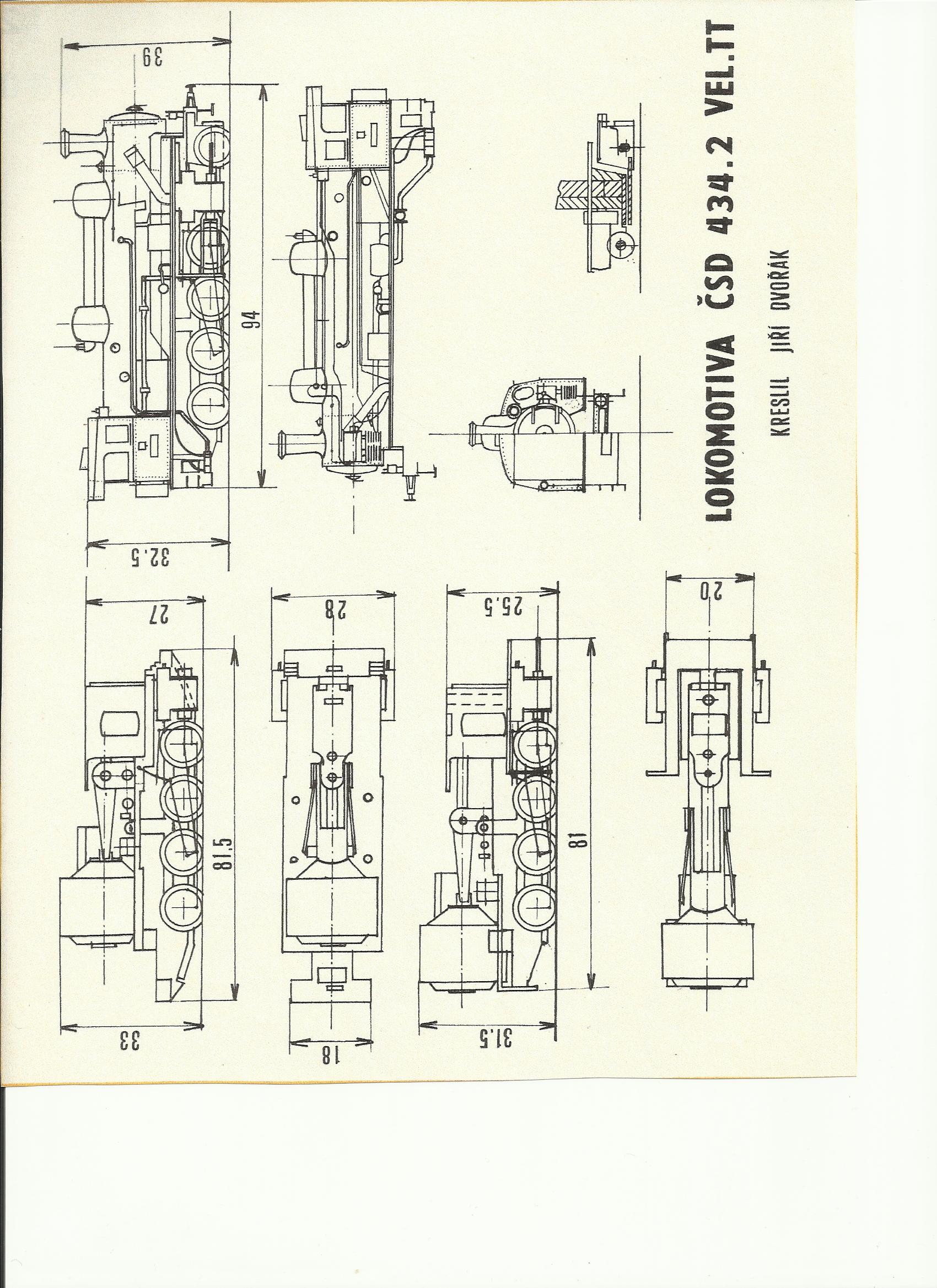 Zaujal mě přímo i popis kolegy, který mi obrázky poslal, tak přikládám: Kolegové tady naříkají, že je málo páry, tak něco pro ně. Možno stavět ihned. Tenkrát lepty nebyly, takže musela stačit plechovka guláše. Sníst, odmastit a jde se na věc. Pájet to šlo výborně. Našel jsem, že p. Číž vyrábí odlitky parních lokomotiv ř.423.0, 433.0 a jiné, takže i to se dá použít. Za těch 30 let co jsem byl mimo, se hodně změnilo. Možná by ty nákresy pomohly výrobcům leptů, jsou v měřítku 1:120.