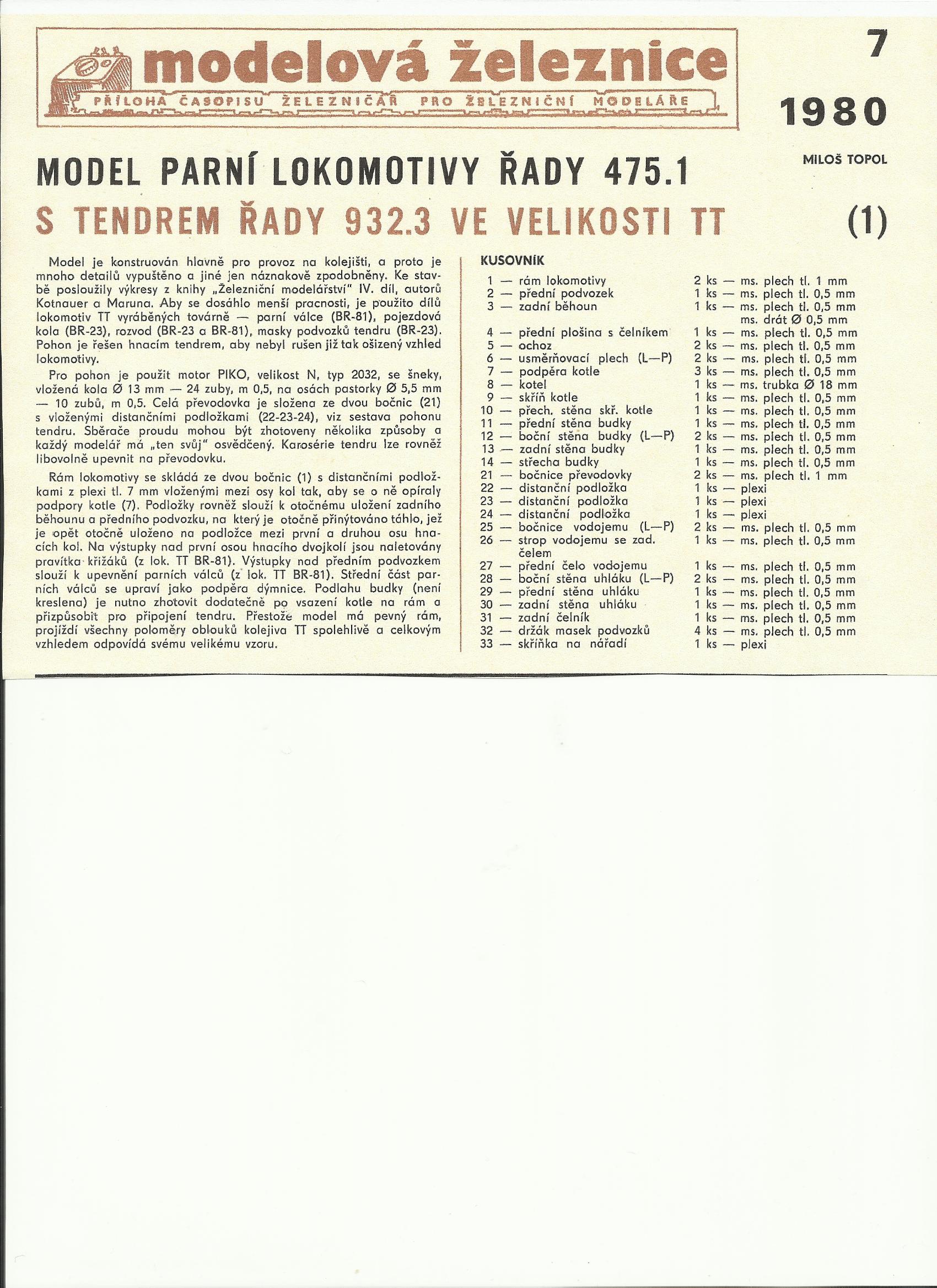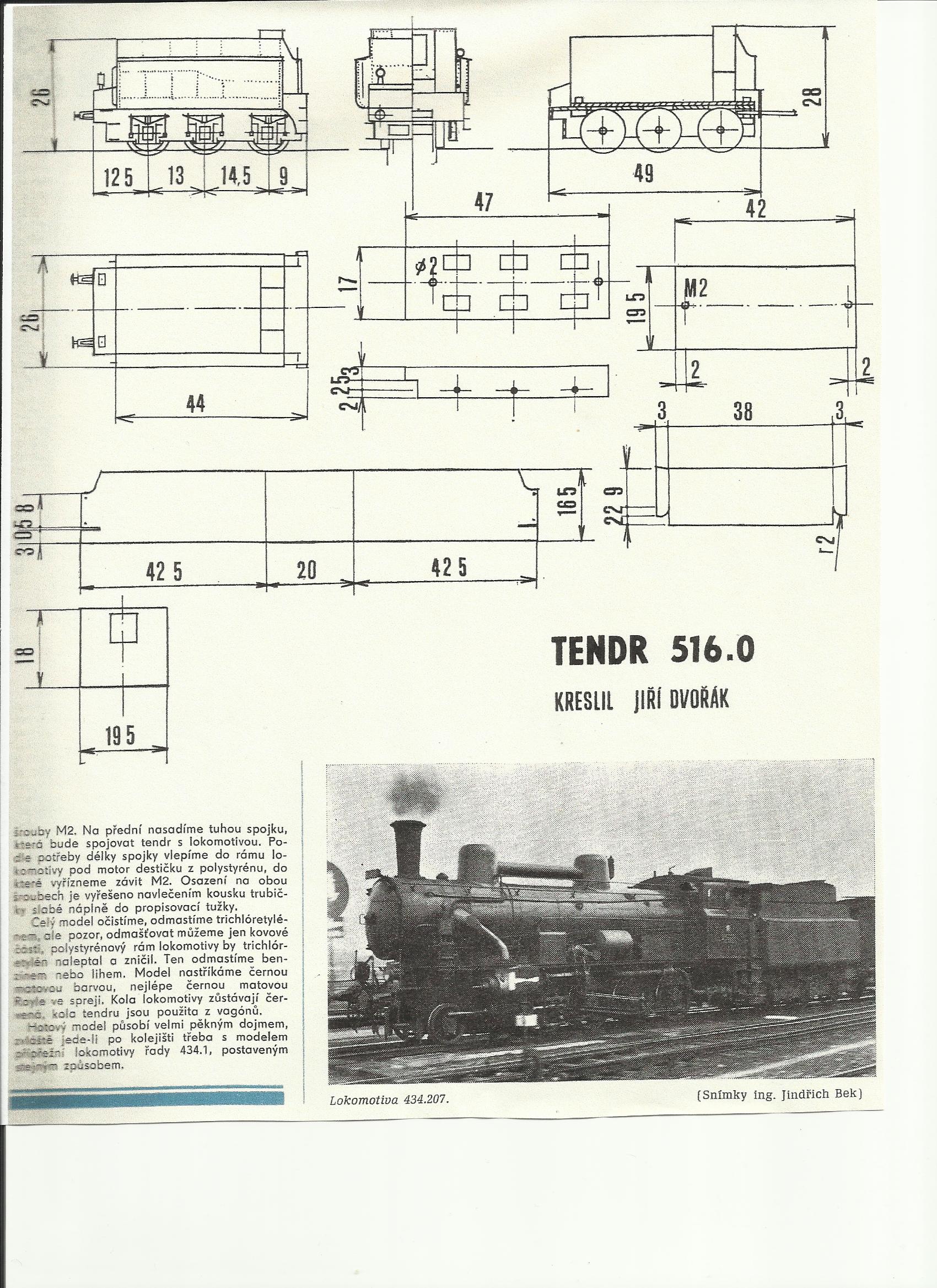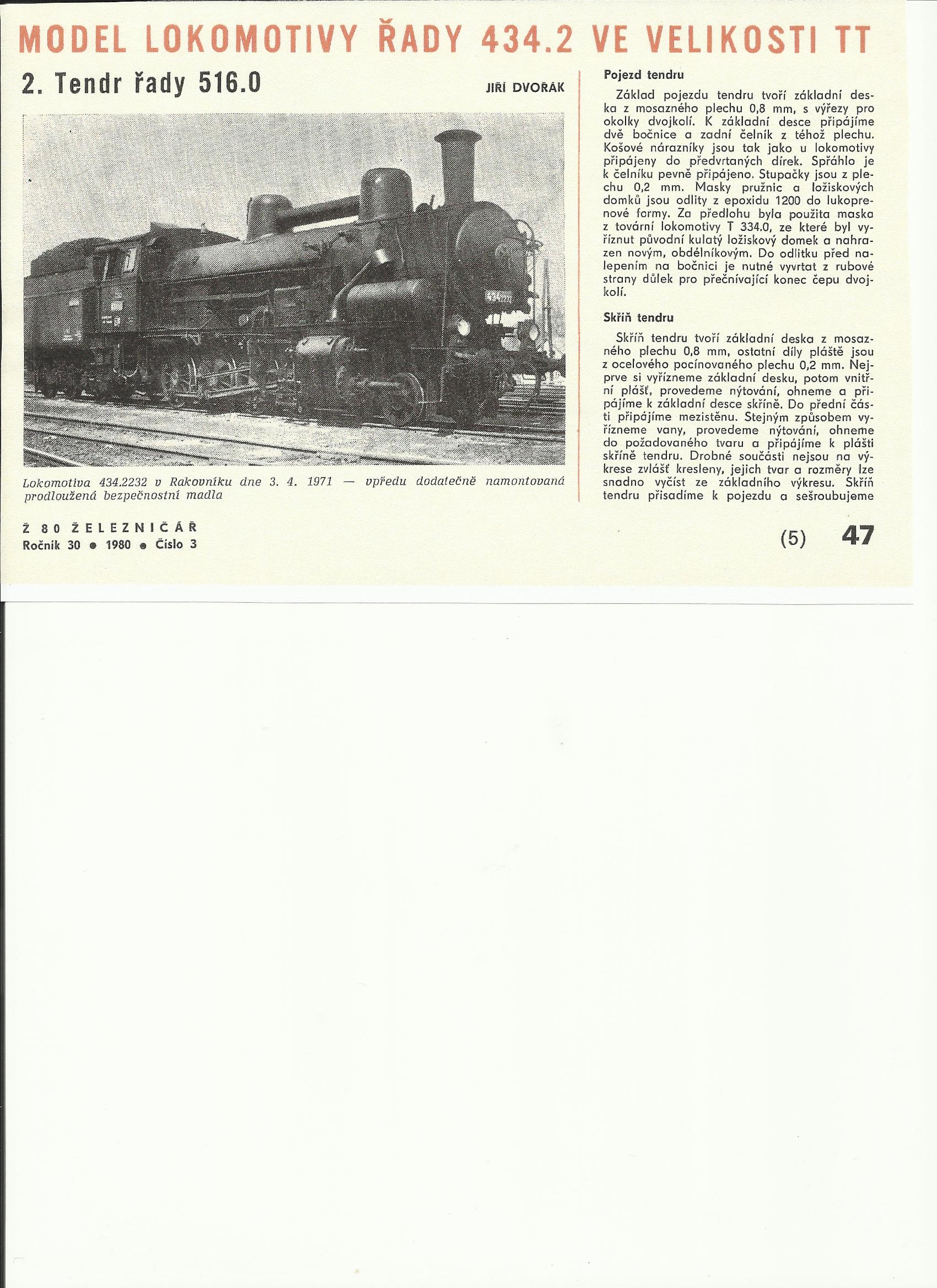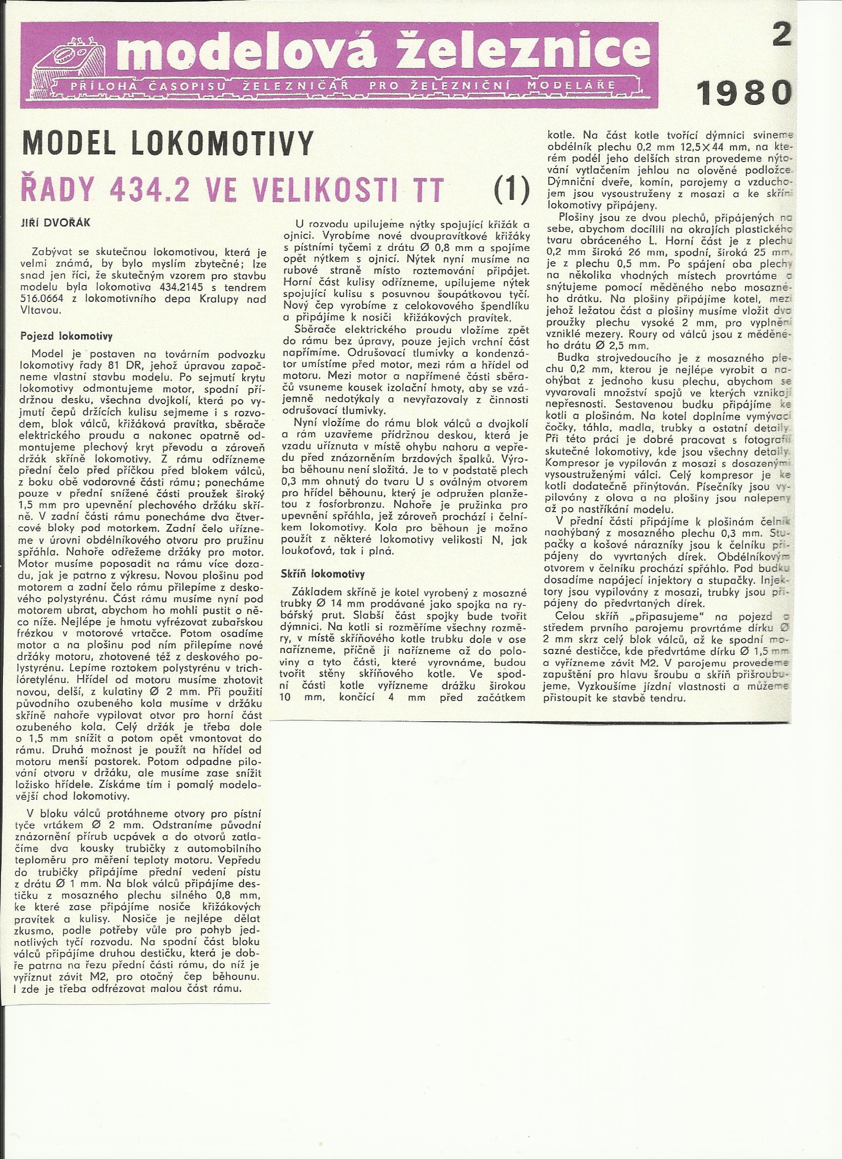 Další návod – řada 434.2 z časopisu Železničář 2/1980. Kolega připojil komentář: Tentokrát to bude jednoduché. Stačí vzít lept čtyřkoláka, pokud už to někdo nevyrábí. Stačí prodloužit dýmnici, vytvořit přítokové trubky a parojemy propojit trubkou. Zbytek je stejný.