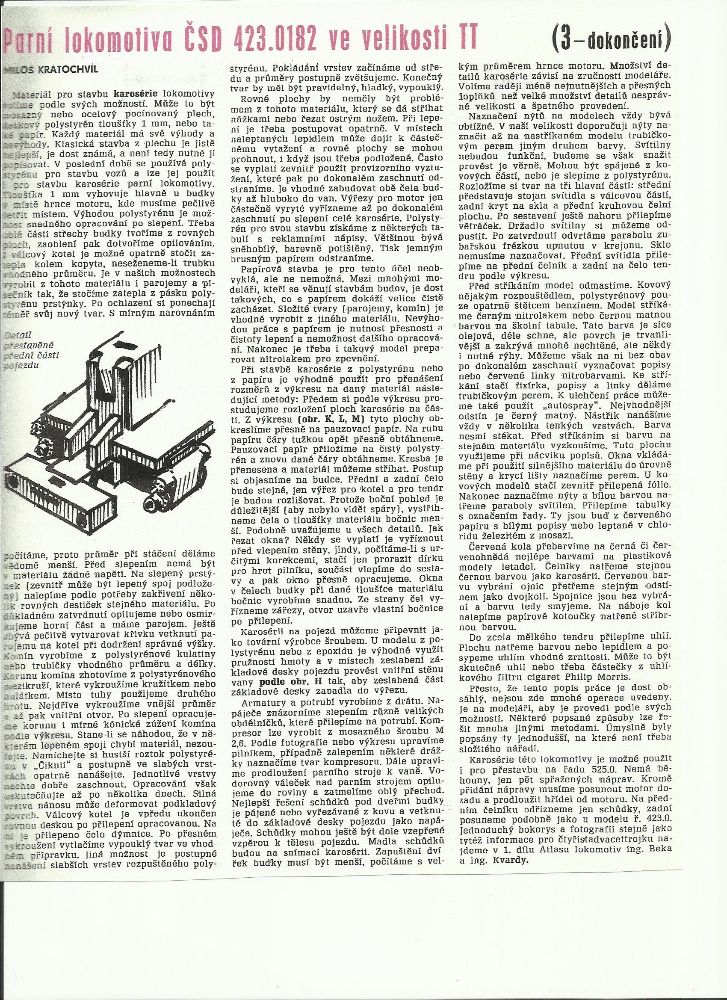 Občas je možné jednotlivé stránky posbírat po internetu, ale protože se mi dostalo rovnou tří kompletních článků ve výborné kvalitě, snad se nebude nikdo zlobit, když zde tyto hodnotné příspěvky – alespoň dočasně – umístím i pro dnešní modeláře jako inspiraci. Autoři všech článků a kreseb jsou uvedeni přímo v souborech, je vždy viditelný i zdroj, ze kterého čísla časopisu je článek převzatý. Není určitě snahou tu jakýmkoliv způsobem „zpronevěřovat“ díla uvedených autorů, ale dnes je výskyt těchto článků spíše náhodný a už prostě nejde jít do krámu a koupit si je v časopise. Jedná se dnes již o legendární příspěvky a s ohledem na jejich kvalitu i kvalitu zpracování nákresů mohou i dnes, téměř po 40ti letech, snad posloužit novodobým modelářům, kteří se už třeba obrátí na stavebnici, ale přesto chtějí mít nějaký kvalitní podklad. Byla by obrovská škoda, kdyby podobné příspěvky upadly v zapomnění. Tak tedy ještě jednou, snad se, milí návštěvníci, případně autoři, nebudete zlobit, že je tu umístíme (pokud ano, neváhejte se ozvat).