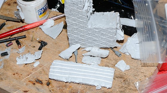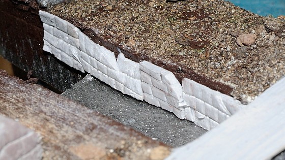 Styrodur má na kolejišti spoustu dalšího využití – postupně si jimi také projdu. Dají se z toho dělat skály, opěrné zdi, nebo jakékoliv jiné plastické motivy, kde je potřeba značná modifikovatelnost tvaru, a přitom nejsou kladeny úplně 100% nároky na přesnost a čistotu provedení.