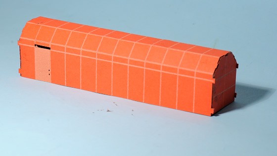 Stavebnice tedy nyní obsahuje stejné díly, ale z jiného materiálu. Čtyři příčky z kartonu 1.0 mm pro zpevnění, a skříň z tenčího lakovaného kartonu cca síly 0.3 mm s gravírovanými sváry a dveřmi.