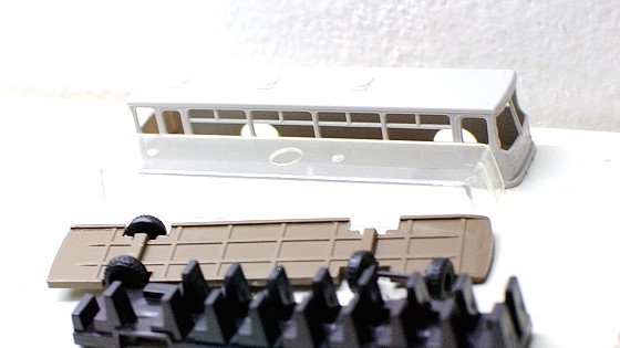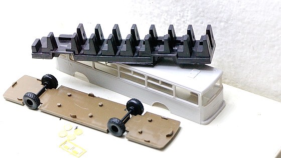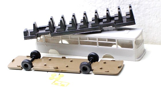 Jak vidíte, díly jsou v jiné barvě, než předchozí starší fotky – je to každý pes jiná ves, jednotlivé stavebnice se liší, ale pro stavbu to ničemu nebrání. Tyhle „jednoduché Ikarusy“ si získaly svou hanlivou pověst částečně díky tomu, že je složí každý, kdo má alespoň 2 prsty, jsou vyloženě za hubičku, a protože přichází v barvě nudného neutrálního plastu, tak je někteří ani nelakují.