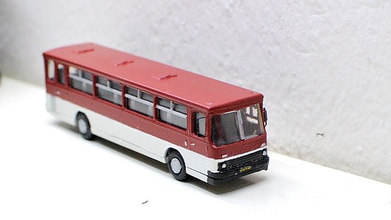 Kdysi jsem hledal, co by to mohlo mít za předlohu. Vypadá to skoro přesně jako Ikarus 255, jen nějaký nejspíš nepochopený východoněmecký soudruh mu dodělal i dveře u řidiče 😀