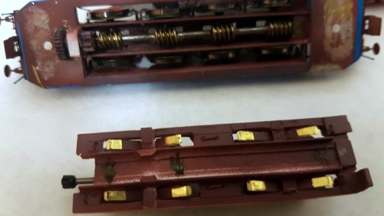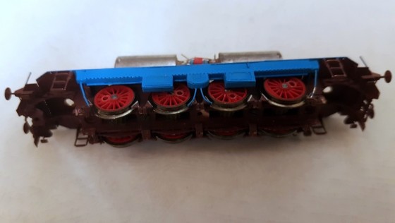 The company Hekttor (Czech Republic) makes a wonderful set of electric locomotive E465. The set is quite complex in the assembly, but it turned out a great model, the painting was done individually for beauty. I use two motors. One is small and it is heated very much. Two motors work well. The poles of the rotors of the motors are rotated 60 degrees. It turns out a six-pole motor, with which the model can stably move at a very low speed. With a conventional motor, the model can not go so slow, it stops.