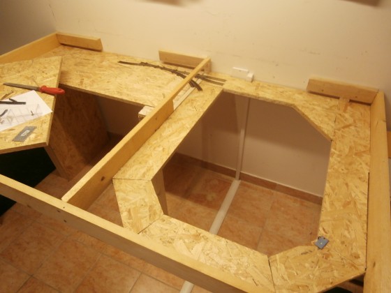 Došlo tak k zásadním změnám konceptu kolejiště, že to s sebou nese i nemalé konstrukční změny rámu. Přichází tedy na řadu epizoda truhlář a sním řezání, měření, vrtání, šroubování,…