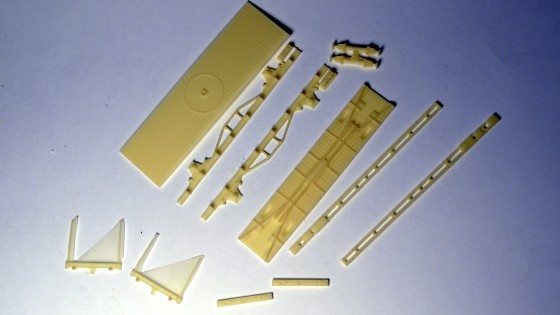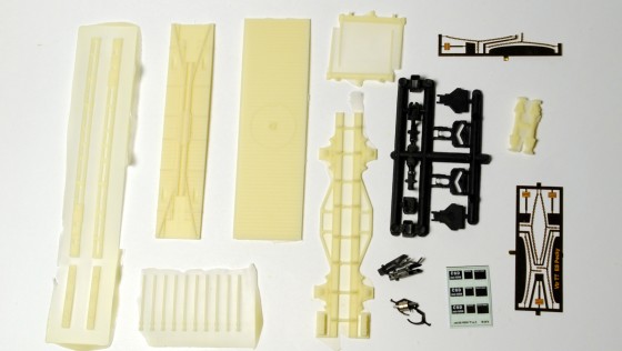 Stavební díly jsou již klasikou výrobce. Samotný vůz sestavíme z přesných resinových odlitků, drobné detaily jsou z leptaného plechu a z plastového výlisku sestavíme kinematiky. Přibalen je i obtisk a spřáhla Kuehn.