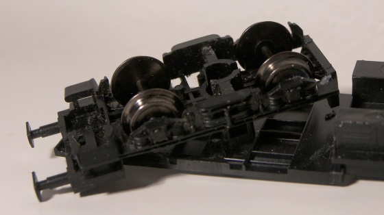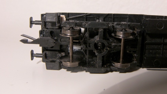 • Ještě postřeh k článku: kromě zasunutí nárazníků do roviny s návalky to chce dosadit kola 7,7 mm a na podvozcích o 1 mm sebrat výšku čepů (+ těch podpůrných sloupků) – musí vám sedět výška nárazníků a střechy dle skutečnosti. Já jsem na svém pokusném pošťákovi i nadstavil kastli v rozích, aby ten zub nebyl tak tragický: http://tinyurl.com/7xfjwhu