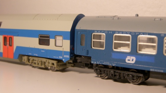 • Já jsem na rozpracovaném BDs udělal podložení schodů a jeden, co na modelu chybí z 0,5 mm Evergreen desky. Jinak jsem uřezal nárazníky u toho osazení, aby mohly být vozy blíž k sobě a talíře jsem taky dělal z tohoto Evergeenu. Teď mám nárazníky zároveň s přechodovými měchy, jak je to ve skutečnosti. Kinematiky jsem umístil tak jako v tomto článku. Až vůz dodělám, dám fotky na netu do nějaké fotogalerie…