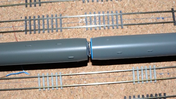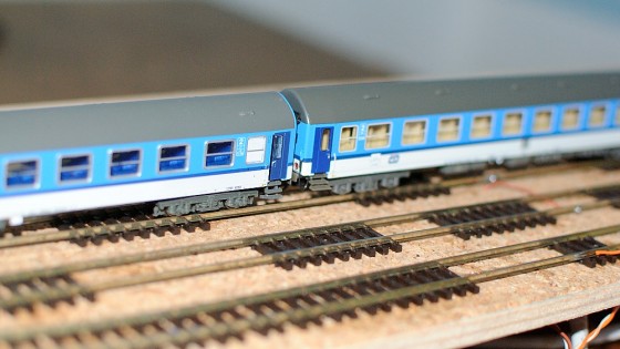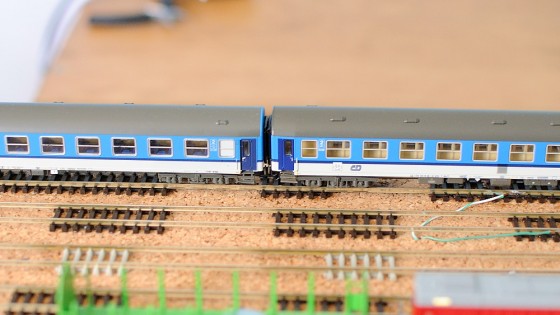 Paradoxně, a to je taky známý problém, mi to zelené BDs Kuehn za Zamračenou Kuehn někdy vyskakuje v oblouku R310 na zaklesnutí nárazníků, zatímco Tillig funguje bez problému.
