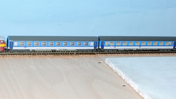 Za lokomotivou je řazeno B od Kuehna, na konci vlaku Bd od Tilliga. Tedy stejné vozy, které byly minule ve fotogalerii. Všechny fotky jsou dnes focené s bleskem, takže některé části můžou být trošku zvýrazněné, hlavně co se týká nasvícení interiéru.
