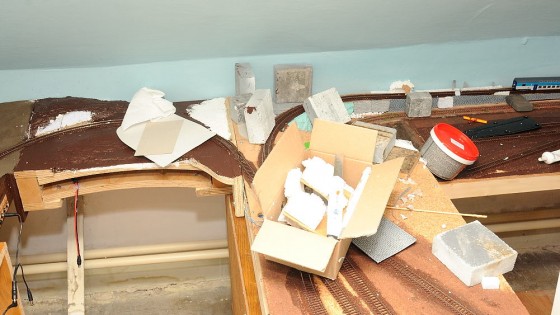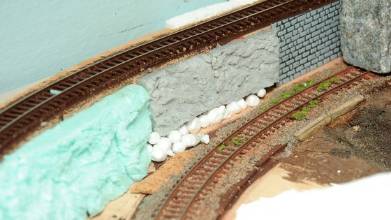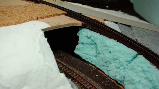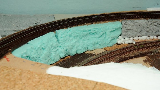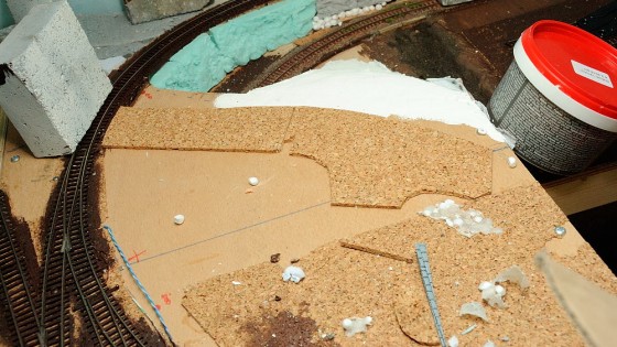 U kolejí jsem nechal trochu extrudovaného polystyrenu na případnou skálu.