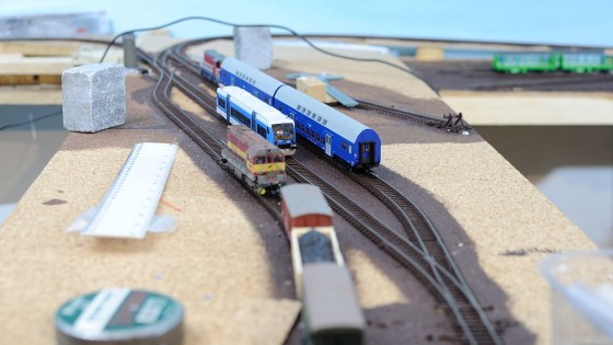 No, co k tomu na závěr – některé věci jsou jen hezké, ale jsou zbytečné. Povedlo se mi úpravou získat prostor pro víc manipulace a neubral jsem si žádné provozní možnosti. Nakonec je z toho další plnohodnotné nádraží se spoustou prostoru pro nákladní dopravu. Jediné mínus, že to nádraží prostě není „klasické kolejišťové“ po vzhledové stránce. Je běžné, v naší síti se s ním setkáme nejednou, ale není nejběžnější. Naopak jsem si víc zkomplikoval situace objíždění jen se dvěma dostupnými kolejemi, pro někoho to může být větší výzva. Je to přesně ukázka toho, že nelze plánky brát 1:1, ale že je vždycky dobré si uvažovat předem, jestli některé prvky v konkrétním provozu mají vůbec smysl. Pokud bych měl jinou skladbu souprav (kratší vozy), možná by to řešení bylo v pořádku, ale při provozu s „mými“ vlaky bych to prostě nijak nevyužil. Pokud máte místa málo, zkuste na podobným zjednodušením konce kolejiště zauvažovat, třeba získáte cenné místo navíc 😉