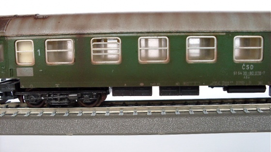 • Za mě říkám, že se mi to naopak jednoznačně LÍBÍ. Jeli jste chlapci někdy vlakem? Nebo jste ho viděli jen z tepla klimatizace svého auta? Jak se rosí dvojskla zevnitř, jak mezi okny roste mech, jak skrz bílá okna není vidět? To ten lak naprosto vystihuje. S těmi žebry – skutečný vůz má nad každým oknem cca 3 žebra, tzn. 2 rezavé pruhy mezi žebry. Tady jich je třeba taky dost – http://zeleznice.e-metro.cz/foto/Bdt_1.jpg. Jak spočítat žebra na voze, který je v modelu o 1 cm kratší a má o 1 okno méně? Asi to nejde jinak, než to „nějak nakamuflovat“. Na čela by možná víc pásla barva do černa než do hněda, ale ty fotky se taky můžou lesknout jinak, než reál, žejo 🙂 Nezapomeňte taky, že v dobách ČSD byla ta čistota vozů jiná (všude samé saze, nafta atd), takže to nejde porovnávat s tím, jak ty samé vozy vypadají dneska a navíc v jiném barevném schématu… Má někdo fotku, aby to objektivně porovnal? Stejně si s celou tou érou ČSD jen tak „hrajeme“ na něco, na co už třeba mnohdy ani nejsou pořádné podklady. Opět jsme se tu dotkli palčivého tématu, a tím je patina. Co se půlce líbí, druhé půlce se nelíbí…