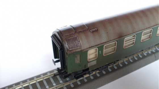 • VoVo, denně jezdím vlakem 80 kiláků, takže vím co a jak, ale jde o to že když patinu, tak s citem danému měřítku, toto při zvětšení do reálu by vypadalo jako vytažené z hnoje. Takovouhle střechu má skoro každej vagon, ale když to sleduju, tak vždy je to méně konstrastní.