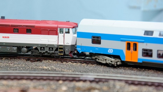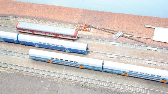 Problém so zaklesnutím nárazníkov medzi lokomotívami T 478.1 (2 ks MTB) a T 478.3 (2 ks Roco) s poschodovými vozňami Kuehn som riešil tiež. Súpravy mám dve, vždy dva vagóny sú medzi sebou spojené vodivým magnetickým spriahadlom a na vonkajších čelách sú pre spájanie s lokomotívami inštalované štandardné spriahla ako na snímkach v tomto článku. Na poschodových vozňoch Kuehn som skrátil nárazníky tak, aby vonkajšia plocha taniera nárazníka bola zarovno s čelnou stenou vozňa. Na niektorých nárazníkoch sa mi to podarilo aj o čosi hlbšie. Počas prevádzky túto úpravu nie je vidieť a problém mám odstránený. Vozne mi robia už iba radosť, obzvlášť po inštalácii osvetlenia interiéru. S inými osobnými štvornápravovými vozňami rôznych typov Kuehn a Tillig som problémy so zakliesnením nárazníkov počas prevádzky s vyššie uvedenými mašinami nemal. Používam koľajivo Tillig, najmenší polomer mám 310 mm, výhybky EW1 a EW2. Lokomotívy Kuehn zatiaľ nevlastním.
