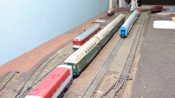 Dalo by se i říct, že za ty zmiňované „3-4 večery“ se nedá zažít provoz. Na začátku je to spíš velká bramboračka, co vlastně vytáhnout za vozy, jak uspořádat provoz, jak si správně „hrát“. A tak jsem odebral polovinu dopravy a začnu pomaleji. Dnes tedy jezdím jen osobní dopravou a je to další měsíc čistě tréninkový, abych si osvojil základní provoz na kolejišti, organizaci křížení vlaků, výběr vlaků ze skryťáku, ale také si nadále zažil ovládání kolejiště atd. Pokud se chcete inspirovat a máte kolejiště stále ve fázi „rozpracováno“, zkuste to podobně. Pokud už máte kolejiště zabydlené, třeba vám pár slov v článku dá nějakou inspiraci pro obohacení současné situace. Cílem je dneska odjezdit nějaký ten čas jen v osobní dopravě a pokračovat v tvorbě zvyků, analýze chyb, zlepšování organizace dopravy a zažití a optimalizaci ovládání.