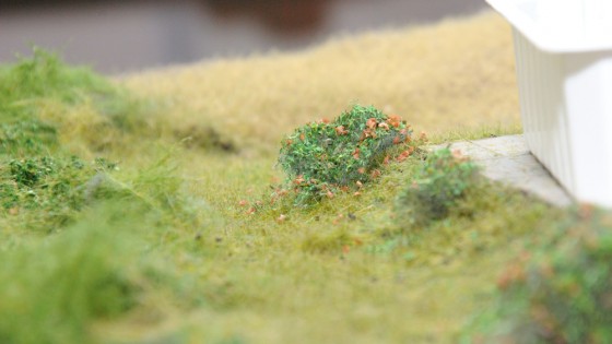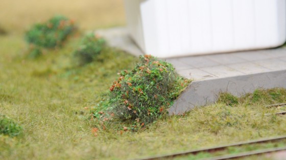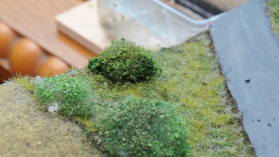Keře dávají krajině úplný třetí rozměr – není jen tráva a stromy, ale keřů může být mnohem víc, přitom práce to byla na 20 minut i s lepením, nemusí se člověk motat s žádnou drátkovou kostrou, výsledek je podobný, materiály použité jsou podobné, a využití je na mnohem více místech. V místě, kde by pod keřem měl být prostor, by bylo samozřejmě lepší naflokovat nejprve vyšší trávu a pak keř usadit do trávy.