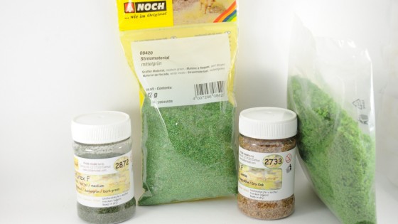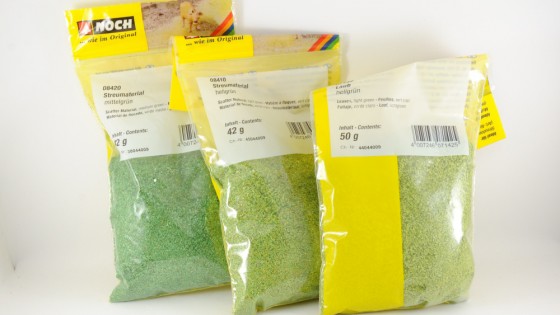 Přiznávám, že je to snad můj první produkt od Nocha, a nezklamal. Noch toho nabízí ucelenou řadu, část toho nabízí jako listy (takové kratší vločky), nebo jako posyp „pastvina“ v delším, cca 2mm prvedení. Chraň vás, to použít na to, na co to Noch prodává. Nasypat tohle celoplošně na zem jako „pastvinu“ (asi jako že vyžraná krátká tráva), musí to vypadat naprosto nechutně uměle. Jako tráva to nevypadá ani náhodou, jsou to takové delší minipiliny, a rozhodně je to dobarvované, protože při namočení do lepidla to pustilo barvu. I travní koberec bude lepší než tohle. Navíc ty světlejší odstíny vpravo mají být asi jako jarní, ale se sebezapřením to půjde použít v menším množství možná jako pozdní léto (suchá tráva). Takhle světlá travička nebo listí se prostě nevidí v žádném ročním období a jen to dokresluje snahu vytvořit si prefabrikovaný betlém. Ale využiju to alespoň do mixu posypu listí na stromy a keře, kde je potřeba objem a různorodost.