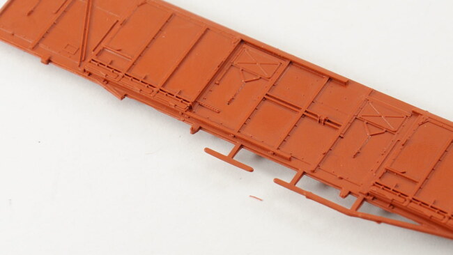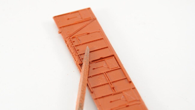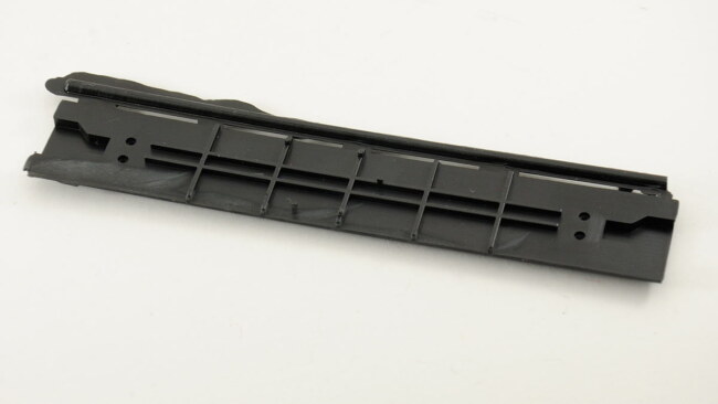 Další bod, kde vzniknou nepřesnosti, jsou výztuhy. Začistit spodní hranu bočnice chce pečlivost, začistit jemnou výztuhu stejně tak. Na obojím jsou blanky a vtoky.